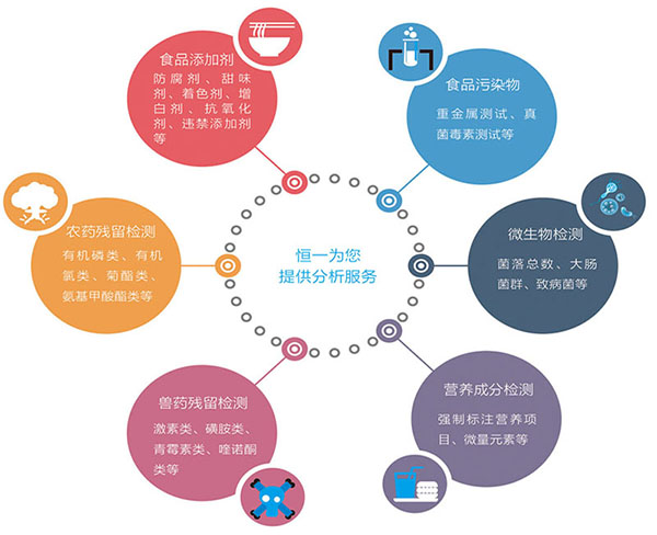 農(nóng)藥殘留檢測(cè)、獸藥殘留檢測(cè)、微生物檢測(cè)、營(yíng)養(yǎng)成分檢測(cè)、食品添加劑檢測(cè)、食品污染物檢測(cè)、農(nóng)獸藥快速檢測(cè)等.